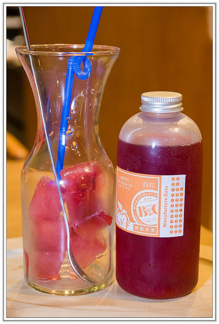 兩瓶飲料一上桌就驚見壺身裡的冰磚的巧妙運用,