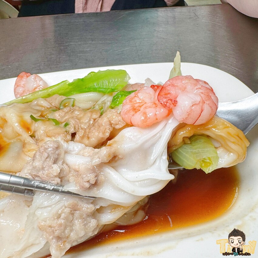 鮮蝦肉蛋腸粉(90元)份量挺多的,有滿滿的肉肉、蔬菜和鮮蝦,海陸雙享一次滿足!