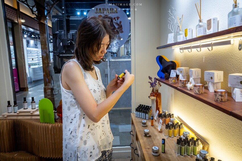 店內商品品項相當完整,有香氛擴香、房間噴霧、按摩精油、天然草本香膏、塔香、線香、精油滾珠瓶、蠟燭薰香、按摩香皂,在這購物建議可以多安排點時間,因為我相信第一次來真的會被這空間給深深吸引,連我都被圈粉了。