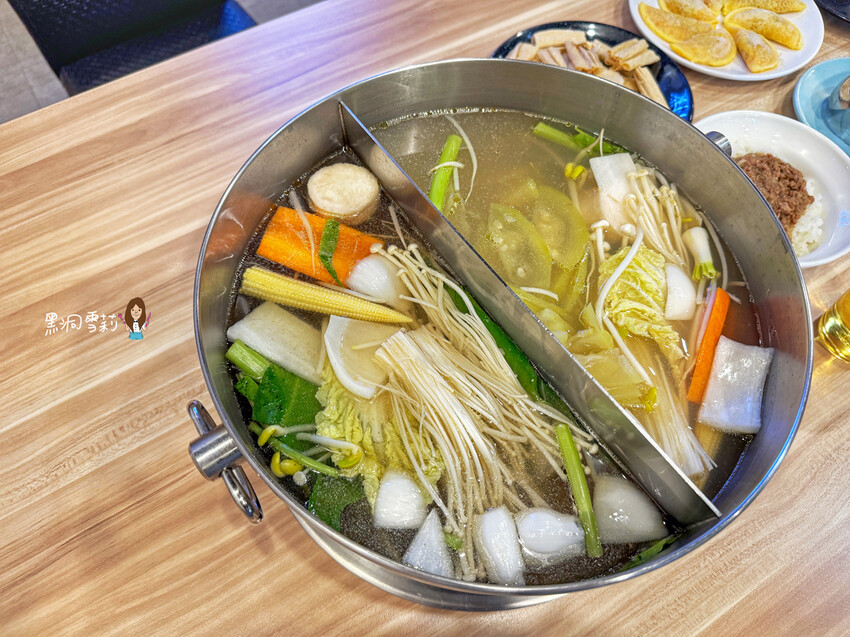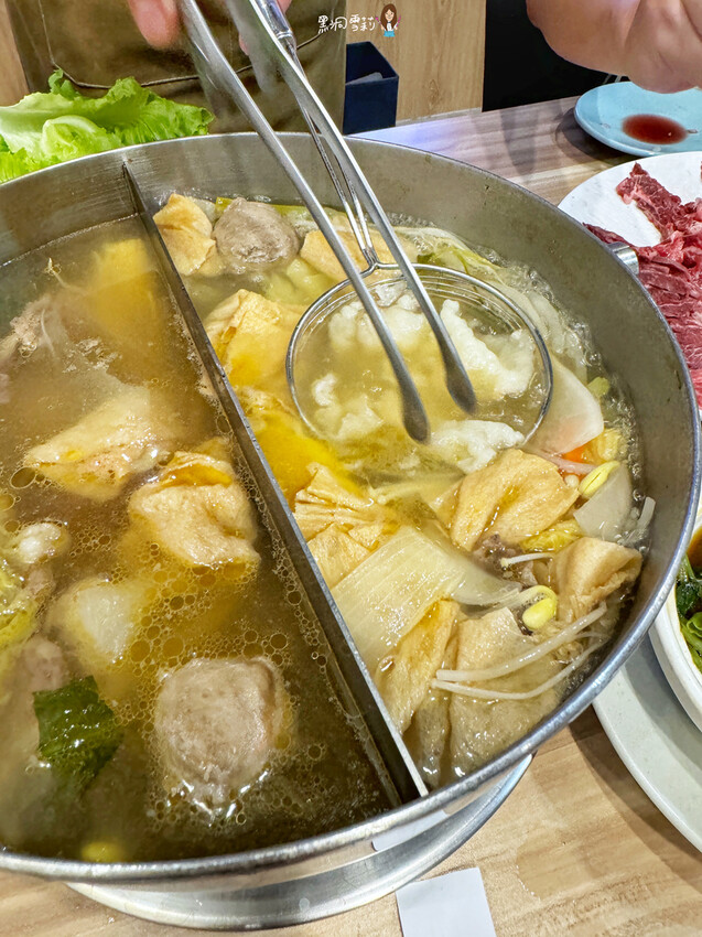 湯底我們選了鴛鴦鍋,一邊是原味牛高湯鍋、另一邊是酸酸西瓜綿鍋。