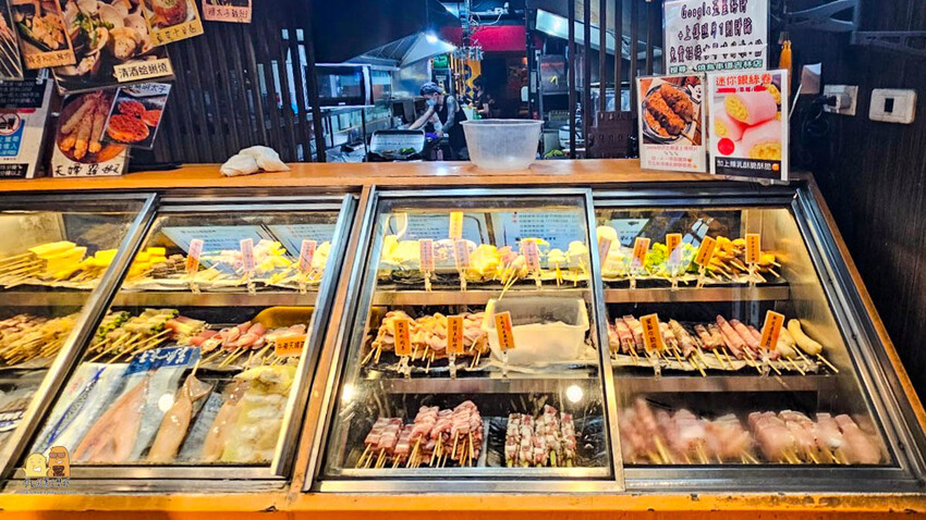 【燒鳥串道】跟許多串烤店一樣,門口都有琳琅滿目的串燒可以挑選