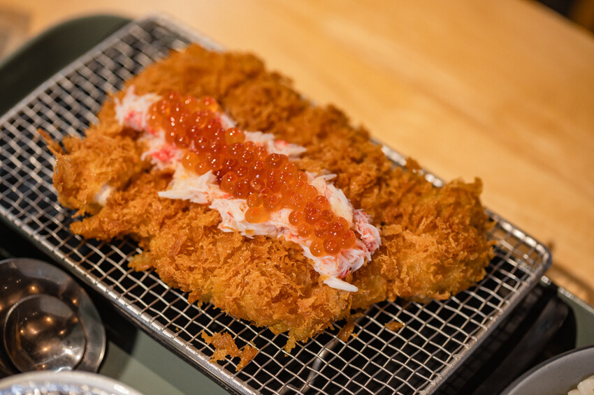 ▲使用日本松葉蟹肉,搭配炸豬排,蟹肉的細嫩與豬排的香脆形成絕妙的口感對比。上面還有鮭魚卵點綴,增添了更多層次的風味。