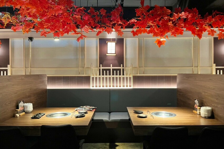 頭頂不僅有浪漫的楓葉裝飾,而且座位也很寬敞好坐,適合情侶、家人或與朋友聚餐。