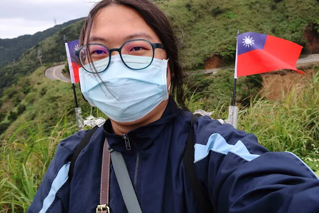 大漠確實揹著兩面「中華民國國旗」出去玩 😆