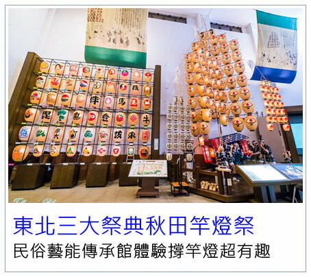 竿燈節是東北的三大祭典之一,聽說夜間點燈遊行真的很壯觀,一年就有約280隻,超過1萬個燈籠的竿燈節遊行。如果跟我一樣無法在竿燈節期間餐與到這麼盛大的祭典的人,可以先利用台灣虎航直飛秋田,規劃來一趟民俗藝能傳承館,了解一下竿燈節的歷史,順便體驗一下撐竿燈,就會知道為什麼每年的祭典有這麼多人要共襄盛舉了。