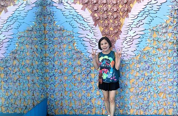 室內參觀累了,接著走向戶外,來到緞帶天使網美牆。