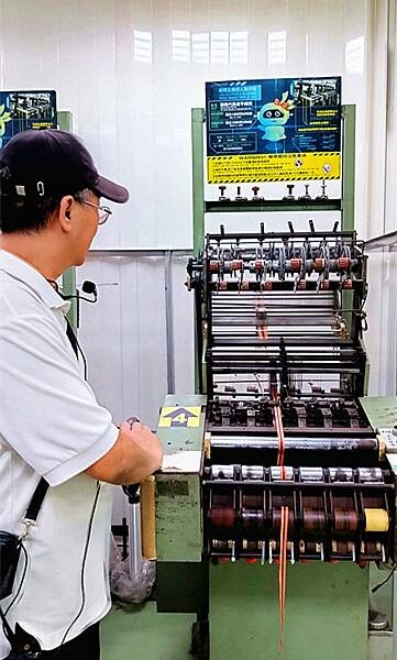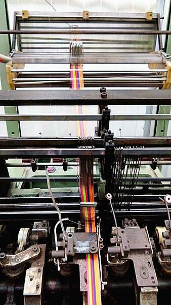 在緞帶博物館1樓可以透過玻璃牆看到整個織帶生產線作業情形,
