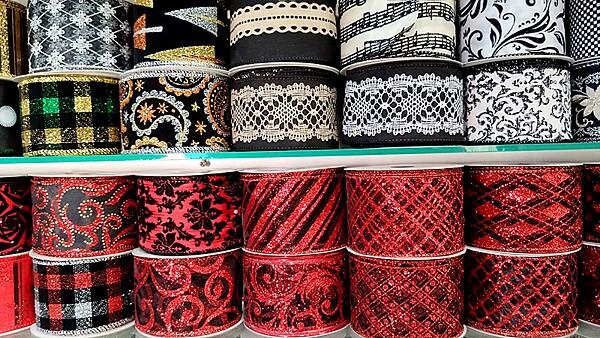 總計大約10萬種緞帶款式,根據季節/節慶/花色/顏色等排列方式。