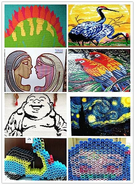 寶寶超喜歡各式彩色織帶拼貼而成的圖案,還有紗管創意作品!