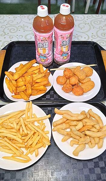 香酥雞塊、香酥地瓜、香酥薯條、香酥花枝丸、酥脆甜不辣,都香酥美味。