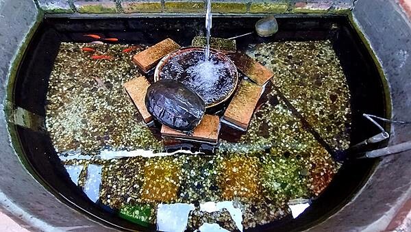 龜鹿護城池裏頭這隻烏龜,據說是建造緞帶王觀光工廠開挖土地時挖到的,