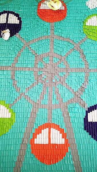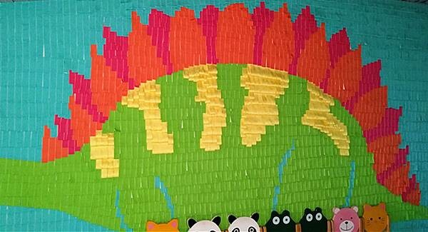牆面全是由彩色織帶拼貼而成的恐龍及摩天輪,一開始就擄獲小朋友的心!