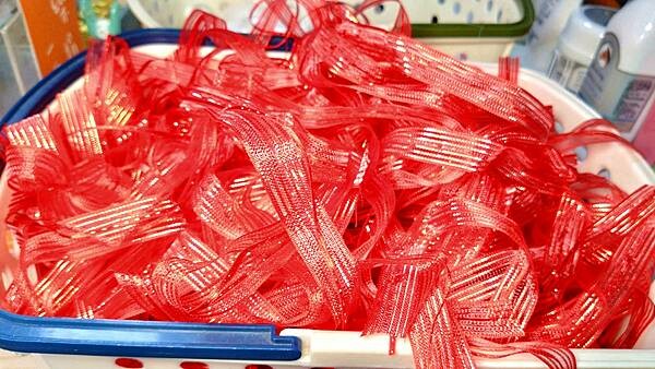 緞帶材料,除了傳統紗線外,各式各樣材質:特多龍、尼龍、特殊紗、片蔥紗、環保材質…