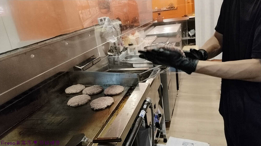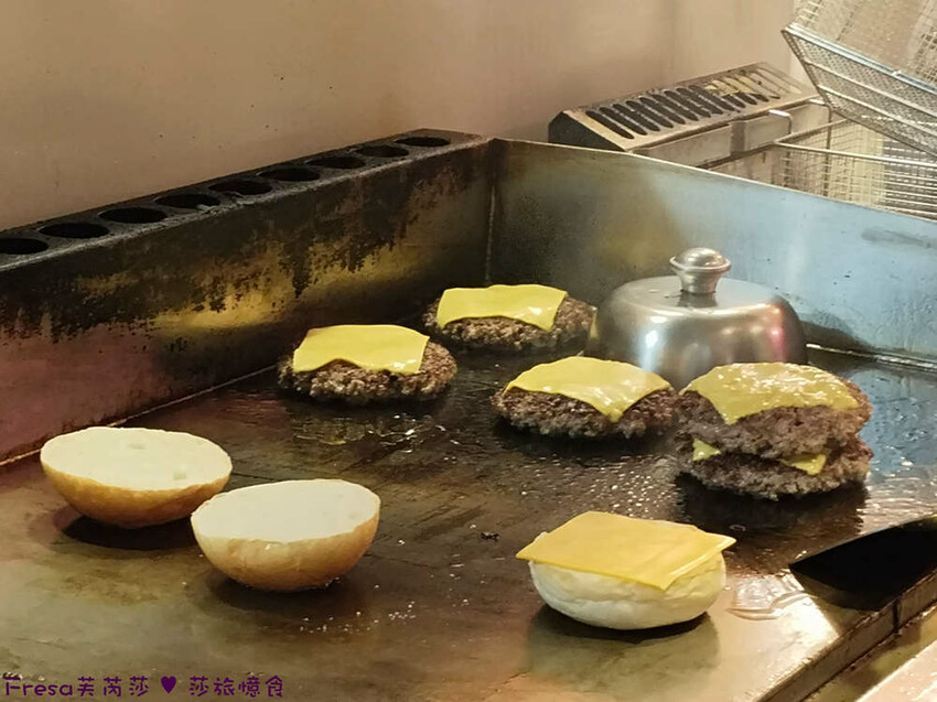 裡頭加入一塊爆堡肉,以及洋蔥、漢堡醬.