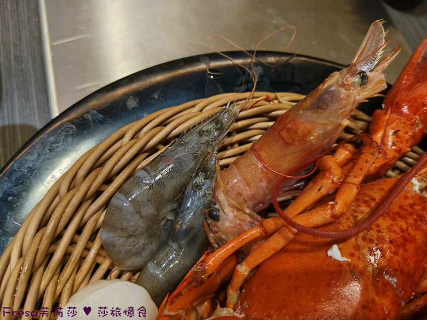 包含波士頓龍蝦、台灣嚴選泰國蝦、生食級干貝、西非金剛蝦、昭和嚴選扇貝、魟魚魚翅、天使紅鑽蝦、海味大白蝦、新鮮蛤蜊~