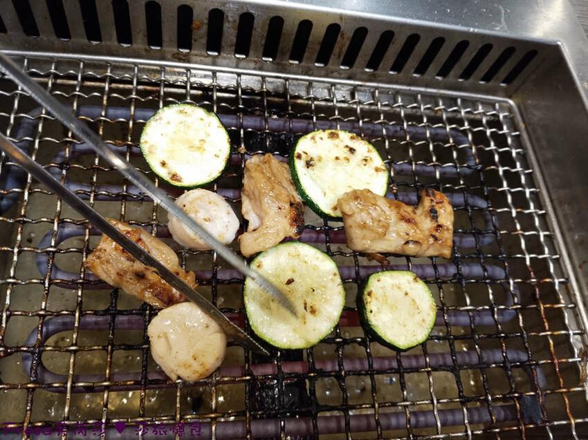 另一邊的燒烤爐具,可以調整火力,肉品帶油不要太大火.
