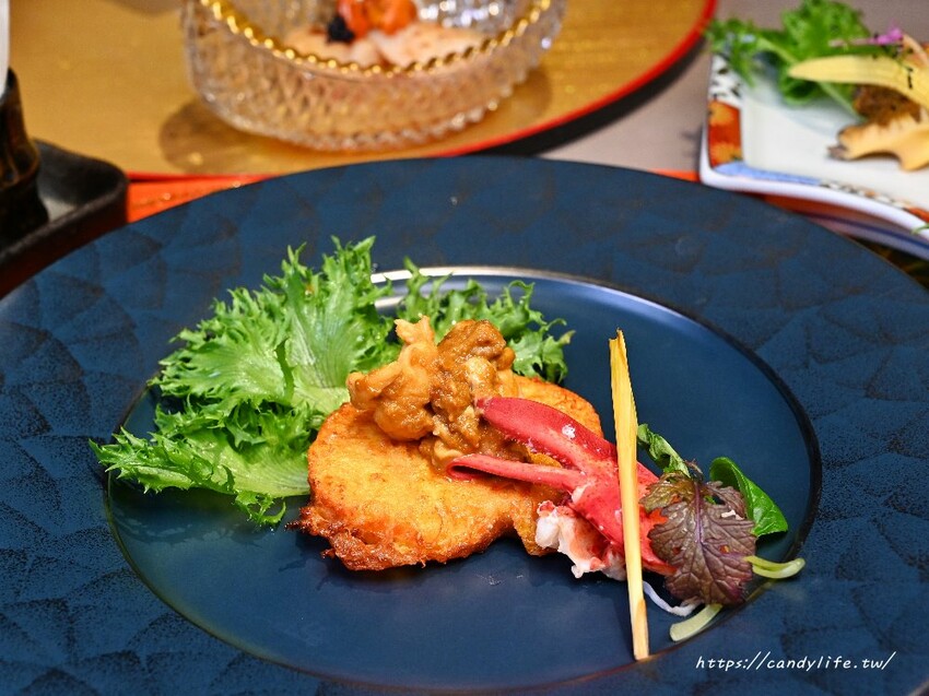 耕壽司的蒸蛋好特別,以昆布上湯加上土雞蛋製成,裡頭還加入了海苔醬,讓蛋香四溢的蒸蛋多了海苔的香氣,中間搭配鮮甜的松葉蟹蟹鉗