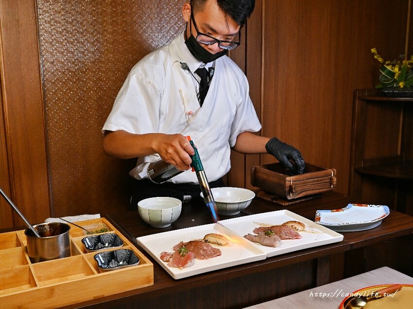 接下來就是耕壽司的必點招牌「炙燒握壽司」,採桌邊服務,不僅能大飽眼福,炙燒過程還能聞到撲鼻而來的炙燒香氣,讓人著迷不已