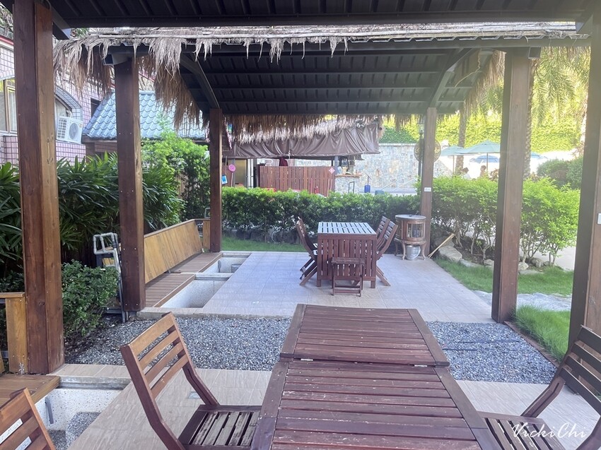 偌大的湯泉區的一角有池畔涼亭,提供住客獨立用餐包廂及專屬足浴池。