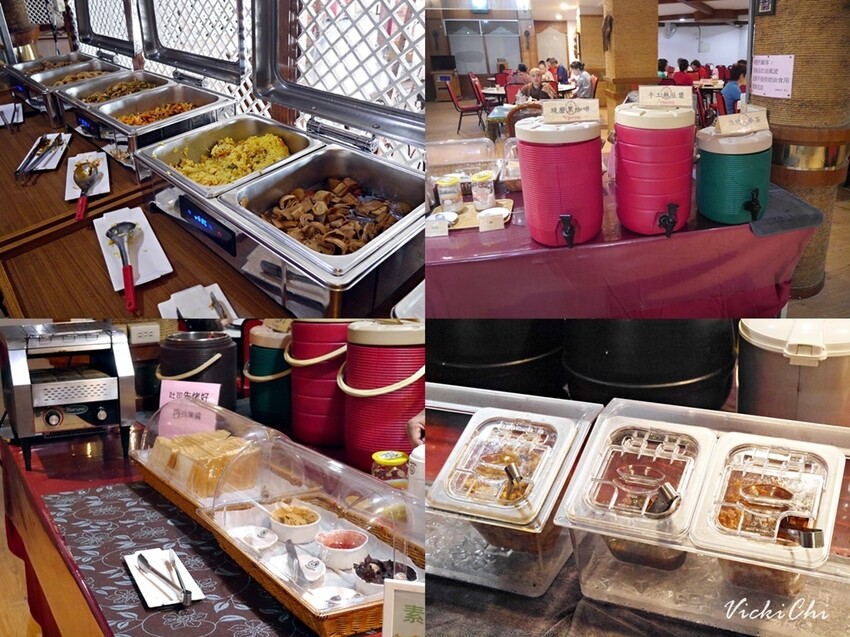 早餐為自助式,以中式菜色為主,西式選擇較少。雖然餐點較普通,但用餐環境十分乾淨舒適,尤其稀飯的配料整齊擺放在一個個小盒子裡,讓人看了心情愉快。