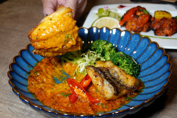 這道經典印度料理烤得外酥裡嫩。雞腿肉以香料醃製後再做窯烤,散發出迷人的煙燻香氣,紅香料帶來些微辣感但又不會過於刺激,每一口都是鮮嫩多汁且可感受雞肉的鮮美和香料的深度,讓人不由自主地想一口接一口。