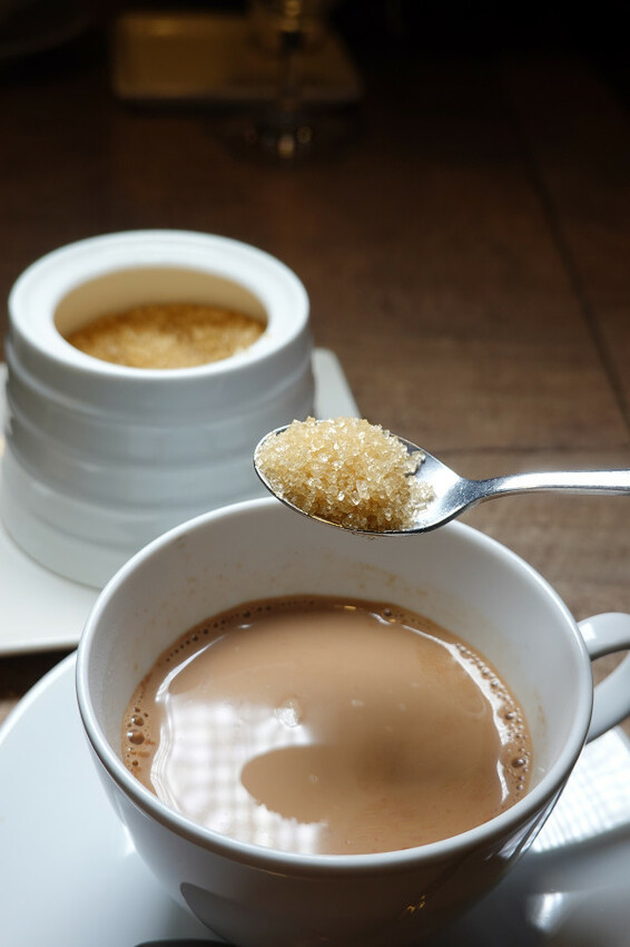 除了芒果拉昔之外,餐後也很適合點印度香料奶茶,這兩樣飲料在印度餐廳很受歡迎。印度香料奶茶要加帶有焦香味的二砂糖更對味,店裡也有賣冰印度香料奶茶,點冰的時他們還會把糖先加好。