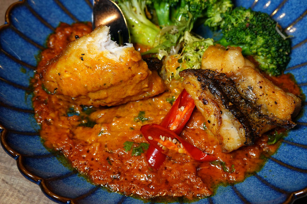 精心製作的海鮮咖哩醬每一口都散發著濃郁的海洋氣息,咖哩醬擁有滑順的口感,能吃到海鮮的鮮甜也有香料的複雜層次,石斑魚的肉質鮮嫩,吸附著醬汁,讓每一口都帶著濃濃的海鮮風味。