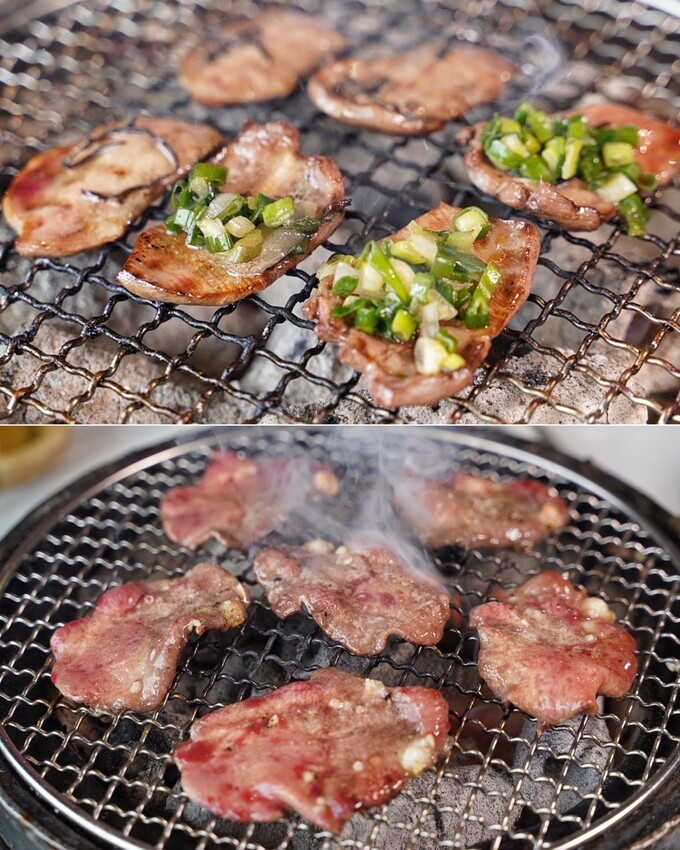 想吃飯,這裡有「蔥花月見飯」,再自行擺上韓式泡菜、燒肉、烤牛舌,就變成一碗超好吃的烤肉飯啦!
