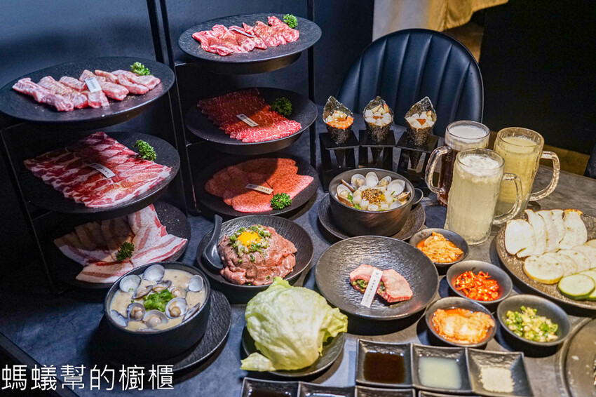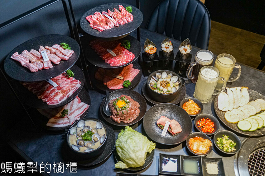 - 三人套餐光是肉品就給了六種,還搭配了蔬菜盤跟泡菜,吃起來更均衡。