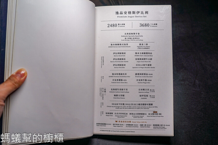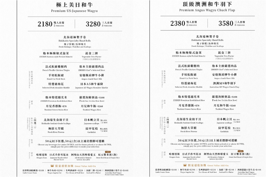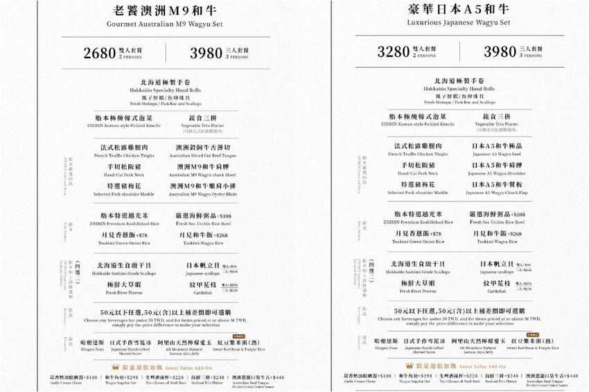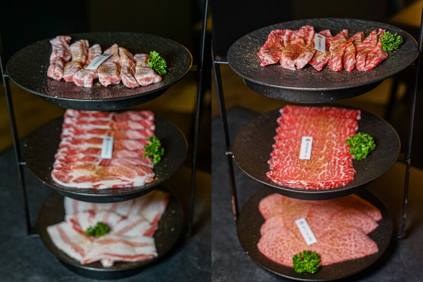 雙人套餐到三人套餐,最好的肉品提供了日本A5和牛,但都還是依照自己的預算點選。