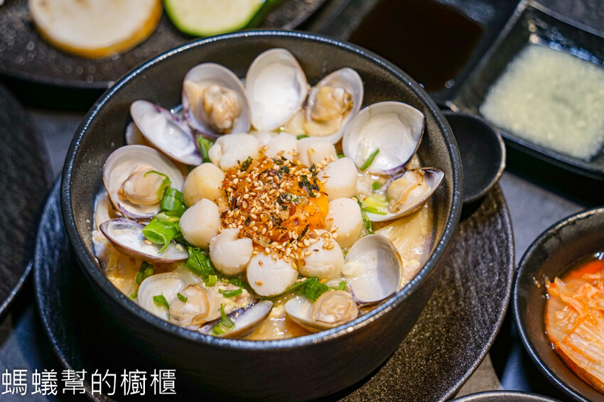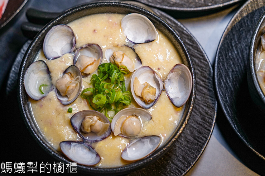 這道是新品上市,烏龍麵相當彈牙,而且我覺得是特別挑選過品質好的烏龍麵,吃起來特別滑順Q彈,搭配生蛋黃一起入口的乳化感讓人滿足,還放上了大量干貝跟蛤蜊,海味也很足。