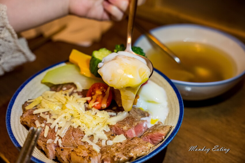 招牌軟嫩舒肥牛排,會有起司鋪在上層增加整體風味口感