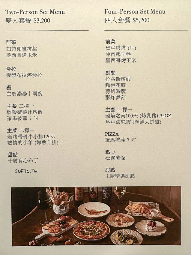 晚餐時段(低消NT60000/位)日-四17:30-22:00、五六17:30-00:00