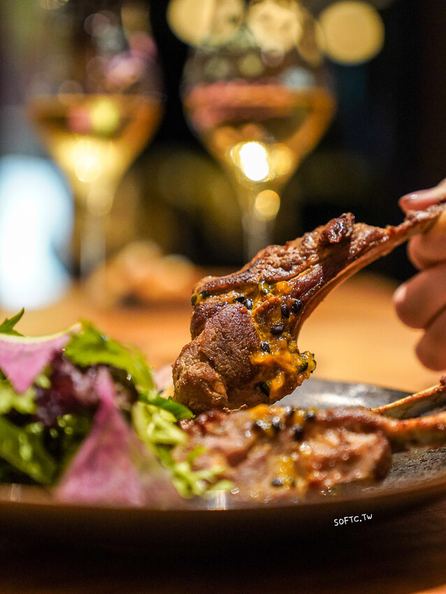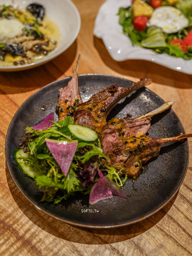 這道菜如詩選用羊肋排,上面淋上百香果醬真的一上桌就可以聞到滿滿熱帶水果風情,百香果醬裡面加入奶油調和,抑制過酸搶戲又能去腥讓羊肉更柔軟,吃起來真的酸甜帶勁又不腥不騷。