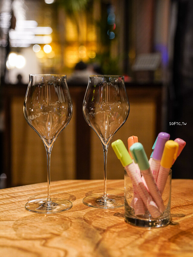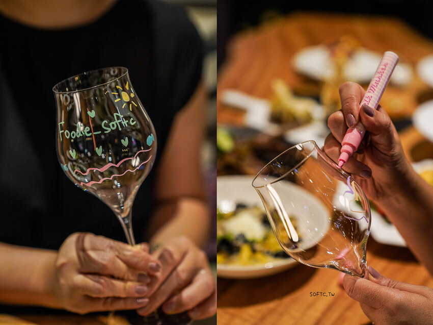 如詩還有個詩人畫杯活動,可以用馬克筆動手繪製獨一無二的專屬酒杯,在等待餐點的同時也不無聊,打發時間又顯得藝術氣息爆棚,喝酒的時候更不會跟朋友搞錯杯子,雖然說軟西繪畫天分根本就是幼稚園等級,但自己完成酒杯還是很有成就感呀。