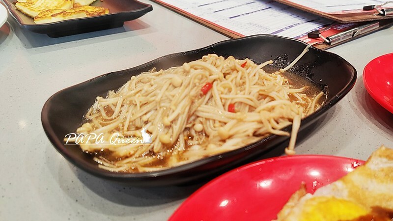 杏鮑菇登場-每一片都切成薄片但分量很足,不意外也是重口味啊,婆婆吃了一半就放棄他說太鹹了,鹹到我白飯都吃光了它還剩!