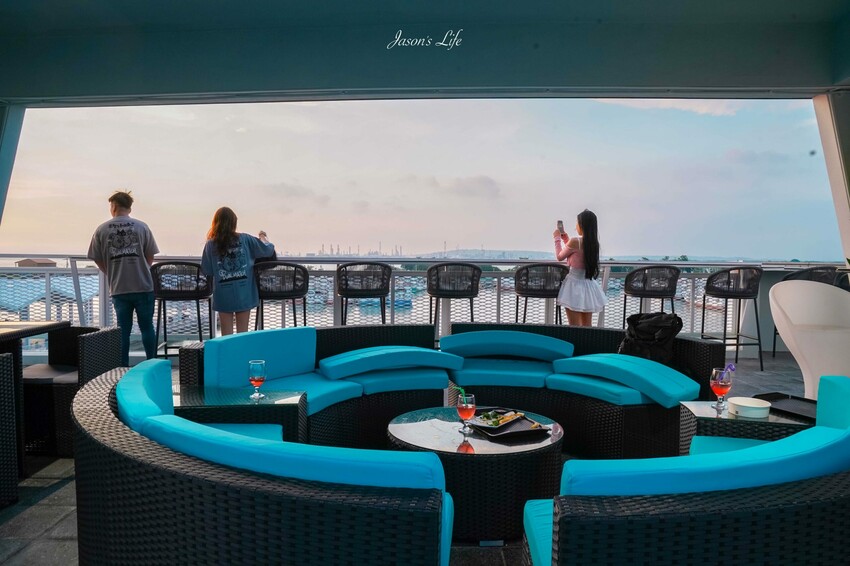另外海景的高腳椅吧台區,可以一眺整個港口的美景