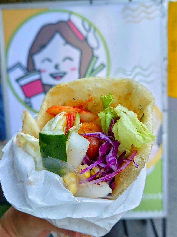 旁邊的這攤海苔飯捲也是它們的,海苔飯捲口味很多,另外也有供應輕食沙拉$55,一次買二個海苔飯捲可折$10還送雞米花喔!