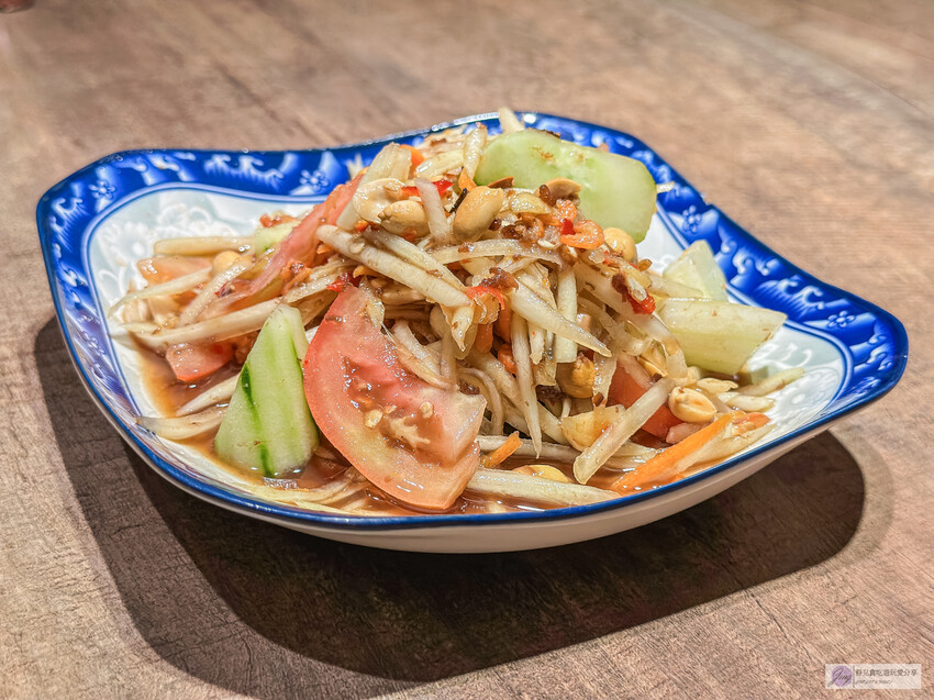 酸酸辣辣的木瓜絲加上紅蕃茄、紅蘿蔔,還撒上花生,口感爽脆,香氣四溢,讓人一吃就停不下來。