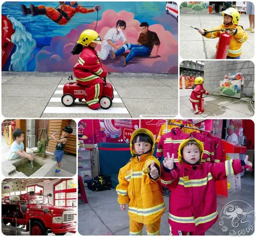 一進入「桃園防災教育館」,可愛的消防員就在門口迎接大家的到來。館內有五大展區,每一展區除了有實體展示,還有許多互動式影音體驗,讓小朋友在玩樂中,也能學到防災應變的相關知識。