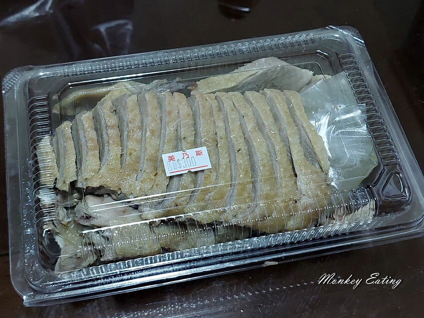 買了1/4隻回家吃,份量1~2人吃剛剛好,皮薄肉嫩本身帶鹹味,不夠鹹可以沾附上的鹹水湯包