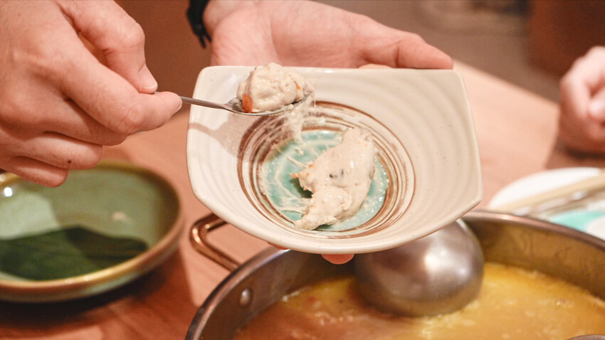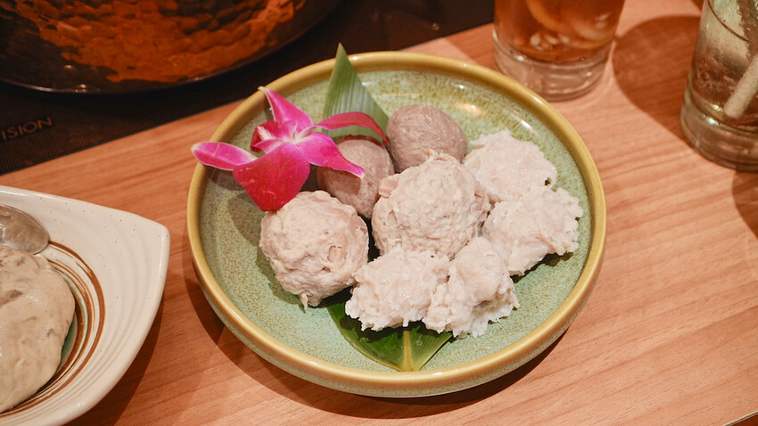 雙人套餐中包含一份丸子拼盤,丸類四選三:海瑞香菇貢丸/多汁牛肉丸/頂級芋頭丸/台南名店浮水魚丸,第一名我推薦芋頭丸,一口咬下可以吃到綿密芋頭,吃過就回不去的好味道!