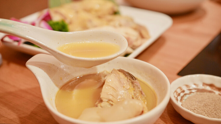 雞肉吃起來彈牙細嫩、鮮美多汁,花膠帶有QQ的口感。