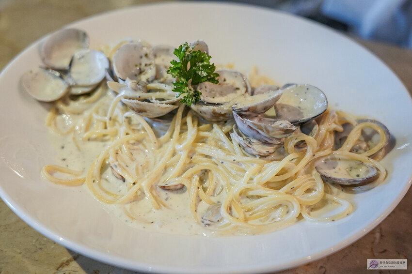 這道麵食中搭配了大約28顆蛤蠣,奶香濃郁的白醬散發著黑松露的香氣,搭配蛤蠣的鮮鹹口感,麵的軟硬度也恰到好處,真的非常不錯!