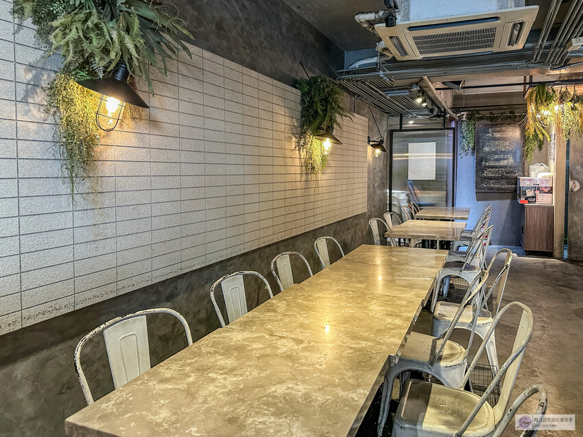 走進HUN 貳,眼前映入眼簾的是滿滿的乾燥花和綠色植栽,搭配暖黃的燈光,帶著一點工業風的設計感。我個人很喜歡靠窗的位置,因為可以享受到自然光。不過那天我們坐在裡面,燈光略顯黃,氣氛依然很舒服。