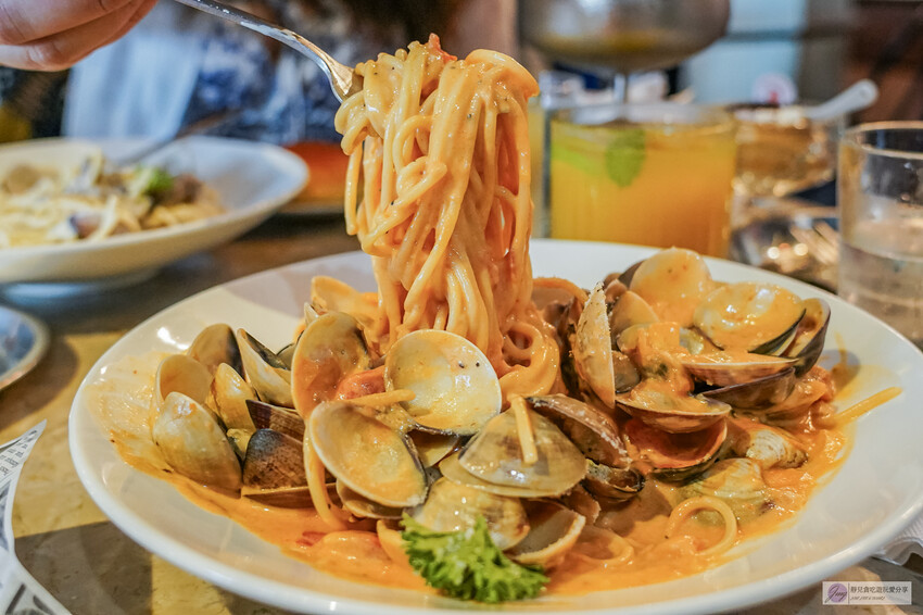這裡最受大家推崇的就是「爆炸蛤蠣麵」,真的料多到讓你吃得過癮,份量也很大!除了義大利麵,餐廳還有炸物小點、飲品和甜點等,價格從$49到$350不等,想用餐的話記得先預約唷,這裡的人潮可不少呢!