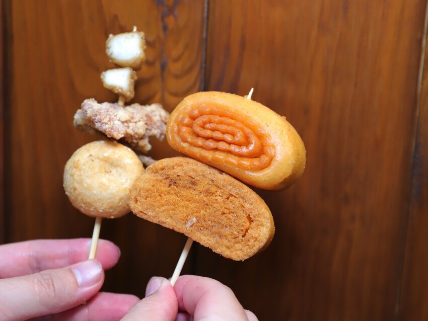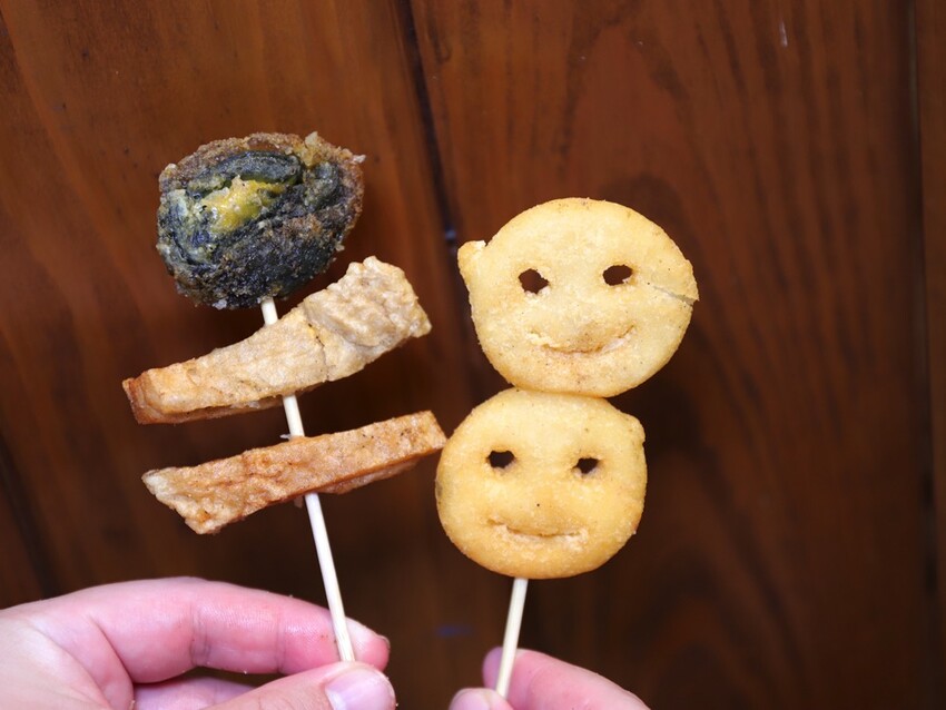 他們家的黑輪選擇也特別多,店家特別推薦這個手工大黑輪!竟然是切成這種薄片的感覺,拿到馬上咬一口,竟然像餅乾一樣的香酥,重點完全不油膩,一瞬間我還以為我在吃香酥餅乾呢!