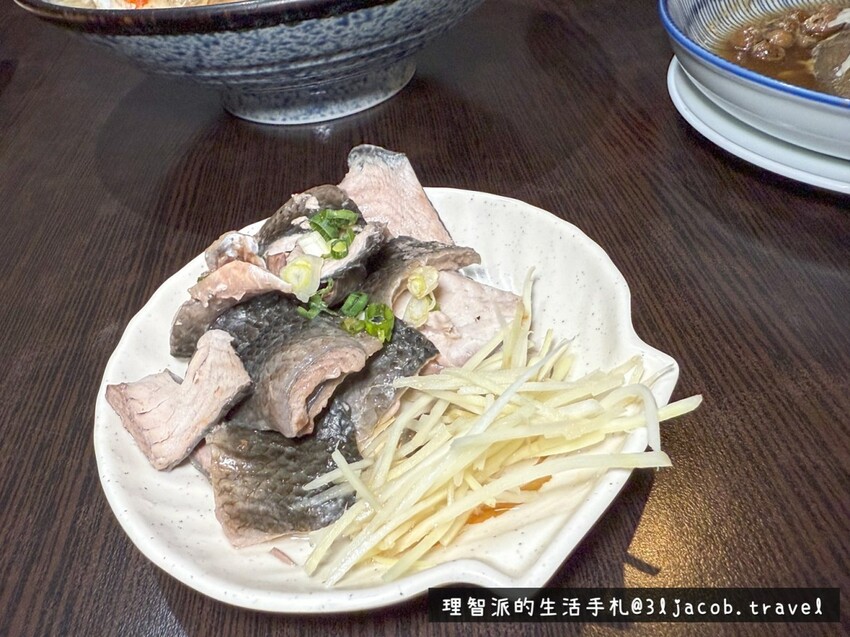川燙魚皮剛上桌還是熱的,吃起來有點脆脆的,帶著天然的魚甜味,不會有魚腥味!等冷卻後口感變得稍微Q一些,整個就像進入了另一個階段,吃起來層次感滿滿!