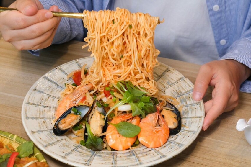 想吃泰式料理不用再揪一堆人,審計新村附近的高人氣【ONE MORE泰】,主打一個人就能輕鬆獨享,無論是打拋豬或是椒麻雞等經典料理都吃,還有許多創意單點品項可點選,必吃手工打製的彈牙金錢蝦餅,可以吃到真材實料的蝦肉本人,直接榮登我吃過的第一名!
