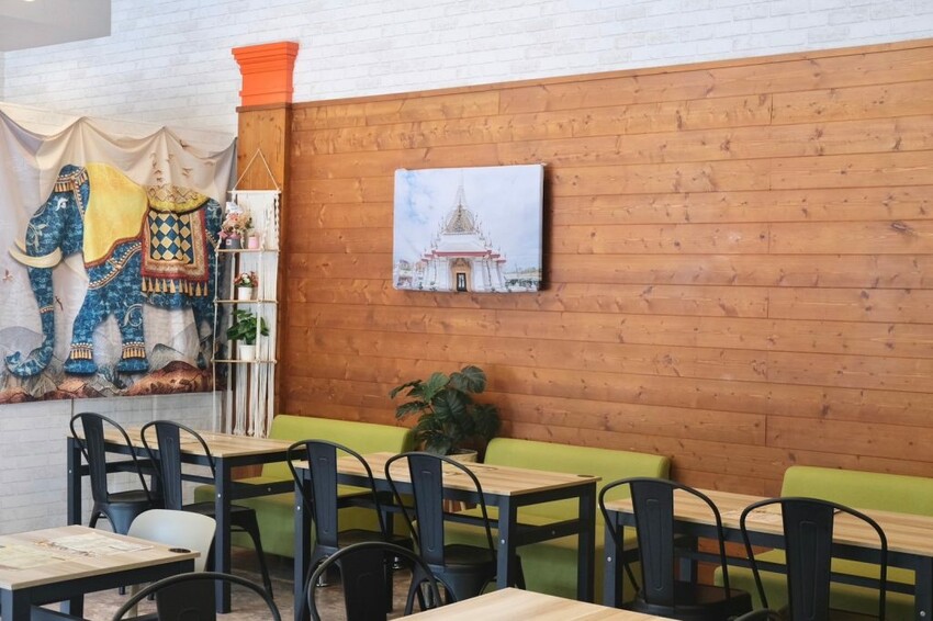 ▼【ONE MORE泰】用餐環境充滿泰式風情,店內擺放許多泰式小物擺設,一走進店口就有個打卡牆,旁邊的吊椅可以乘坐拍照,整體的空間氛圍相當舒適。